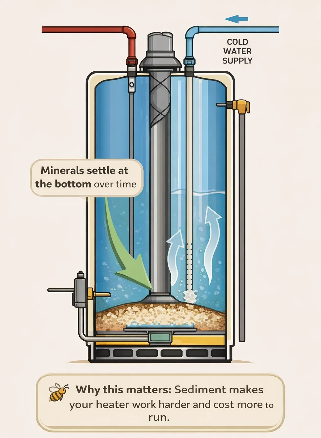 Sediment doesn’t just affect comfort and bills. It shortens the life of your water heater.